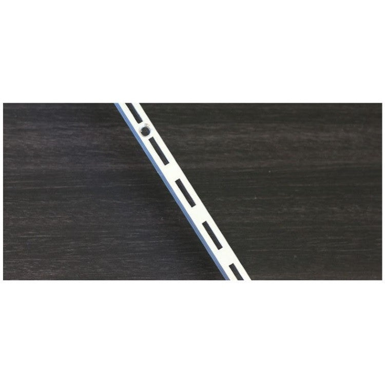 The Aluminium Fineline Slotted Channel is a discreet, flush-fit support system for clean, modern retail display walls, allowing slotted shelf brackets to integrate seamlessly and keep shelving lines sharp.