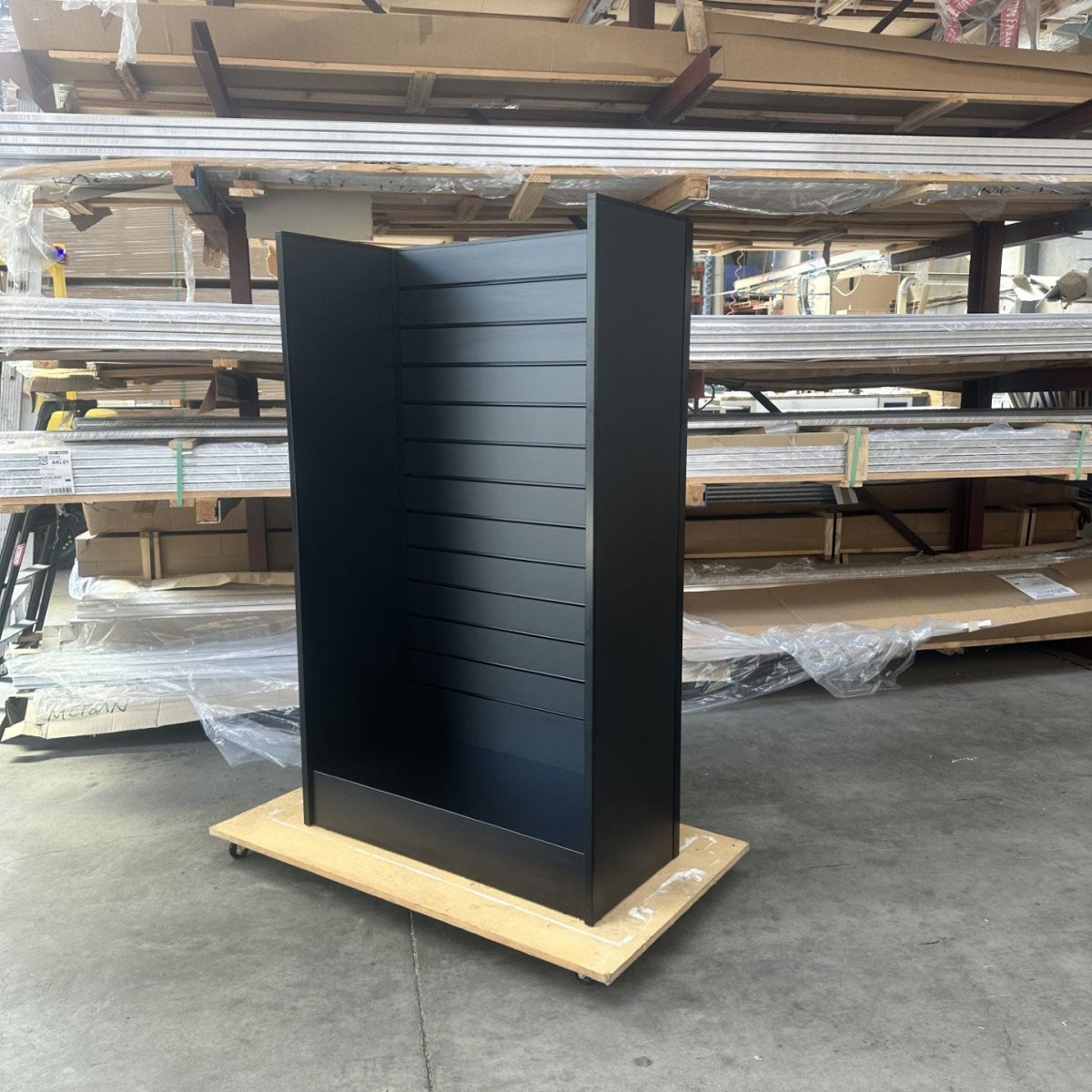 Need a bit more display space without increasing your footprint? Plankwall®Freestanding Slatwall Display Panel with integrated side panels creates extra merchandising surface while keeping a compact, modular layout.