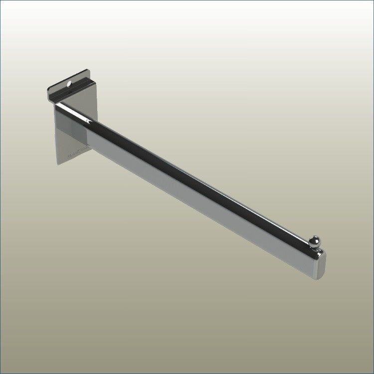 Straight Arm Display Bracket with ball tip is a straight arm hanger for clean, easy access front facing presentation with optional direct wall fixing for flexible retail wall layouts.