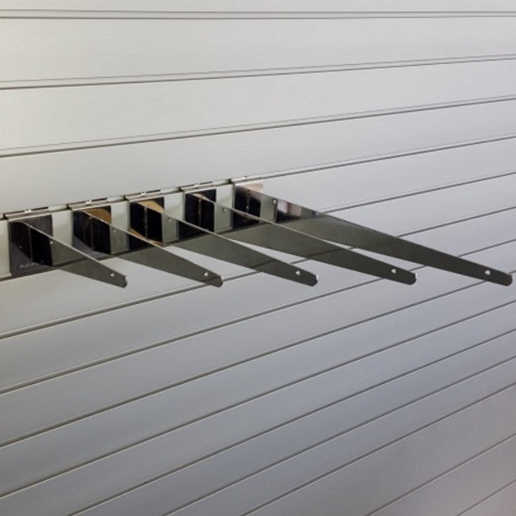 Delivering both strength and visual consistency for Plankwall® slatwall installations, these brackets integrate cleanly alongside complementary slatwall hanging hardware, merchandising hooks & other slatwall attachments.