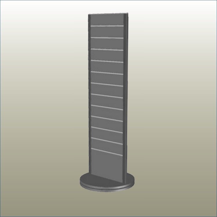 The Plankwall® Two-Sided Retail Display Stand (Tower) – 495W is a popular freestanding, rotating slatwall display designed for retail stores, pop-ups, and trade show environments. With offset slatwall grooves on both sides and a stable rotating base, it makes product easy to view, access, and manage throughout the day.
