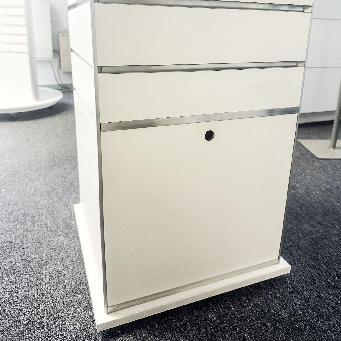 The unit maintains a clean minimal look with slim aluminum corner edging for strength, maximising usable merchandising space while the concealed base storage helps keep stock and materials organised and out of sight.