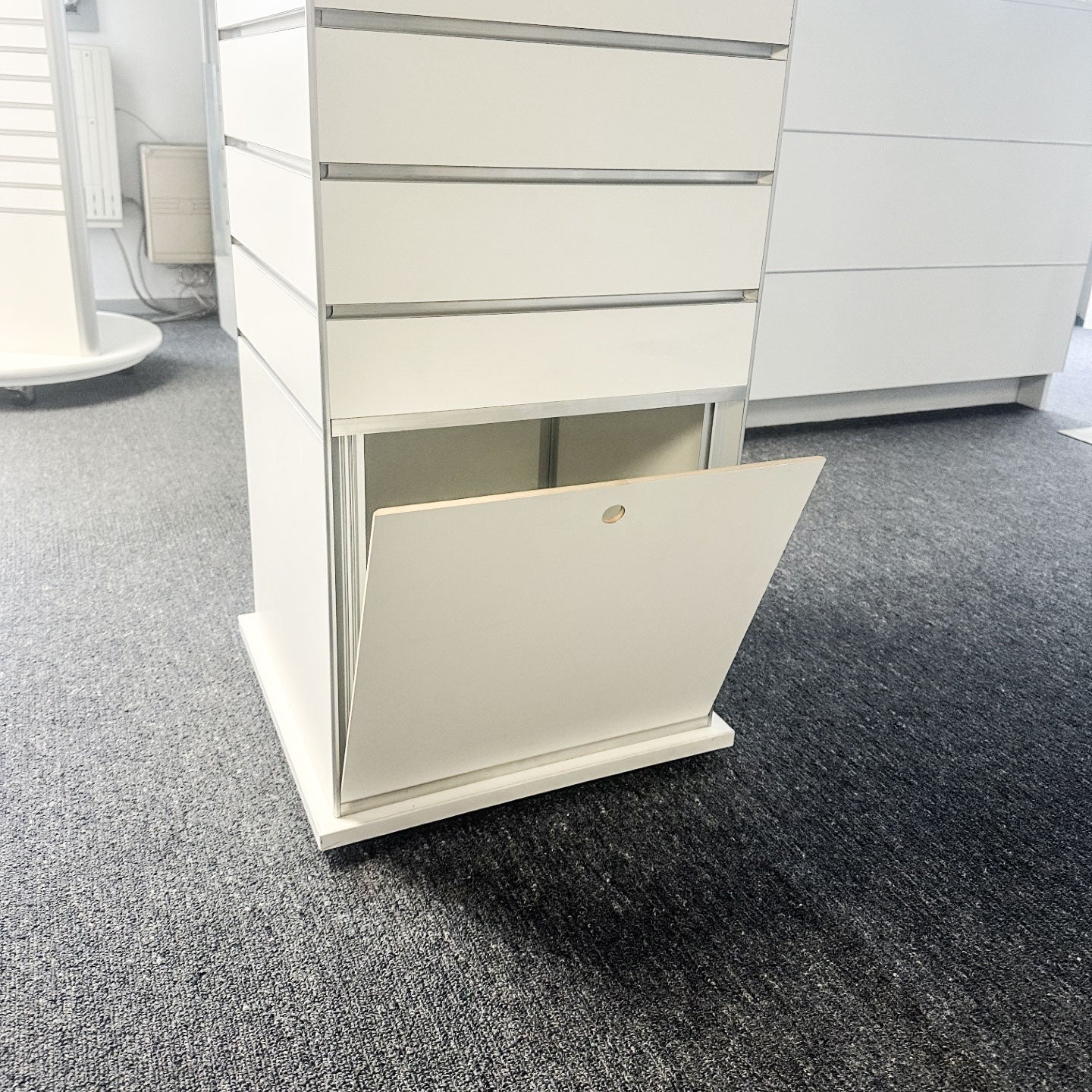 A modern, slimline four-sided rotating box display stand tower from Plankwall®, designed for compact, freestanding retail and commercial displays.