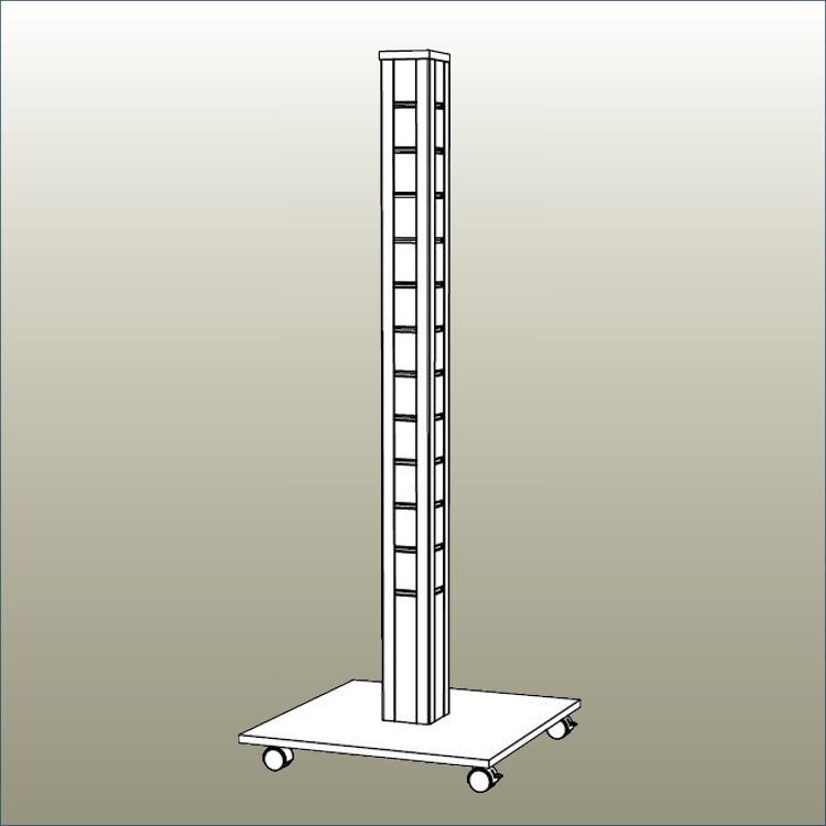 Set on a sturdy mobile base with four-sided vertical display, it keeps garments visible, accessible and easy to shop from every angle. Ideal for denim, outerwear and higher-volume stock, it delivers a polished, professional floor presence while still feeling open and inviting.