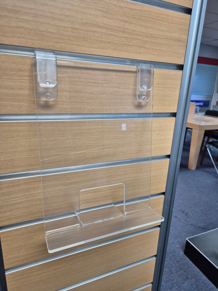 Purpose-made accessories, including wall-mounted bookshelves, are designed to work with Clip PC3, using a spring-loaded mechanism that locates into pre-set holes in the acrylic for strong support.