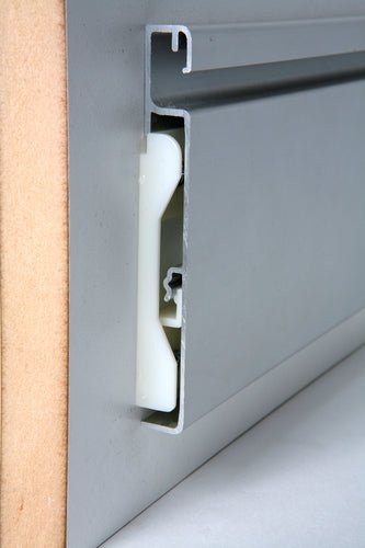 The Plankwall® Utility Plank is a slimline aluminium slatwall plank designed for smart storage in tight spaces — behind doors, inside wardrobes, or along narrow utility walls.
